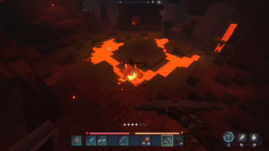 Та же логика применяется и к подземному миру. Чем глубже, тем разнообразнее враги и ресурсы. На верхних уровнях встречаются лагеря гоблинов и паучьи гнёзда. По мере продвижения вниз игрок попадает в более враждебные области, включая зоны с лавовыми реками и живучими противниками, отчего локация напоминает «Нижний мир». Другая особенность пещер кроется в добыче ресурсов. На севере и юге располагаются особые жилы. В холодных регионах можно достать кобальт, а под пустынями – торий. Оба нужны для создания экипировки и прокачки.