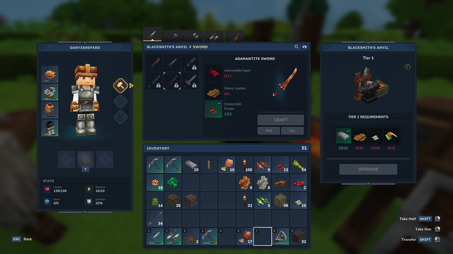Крафт также переработан, но без отхода от привычной логики. Вместо универсального верстака используется набор специализированных рабочих станций. Отдельные верстаки отвечают за оружие, броню, строительные материалы, фермерство и другие направления. Сам процесс создания предметов не привязан к комбинированию ресурсов в сетке 3×3. Для крафта достаточно наличия необходимых материалов в инвентаре игрока и ближайших сундуках.