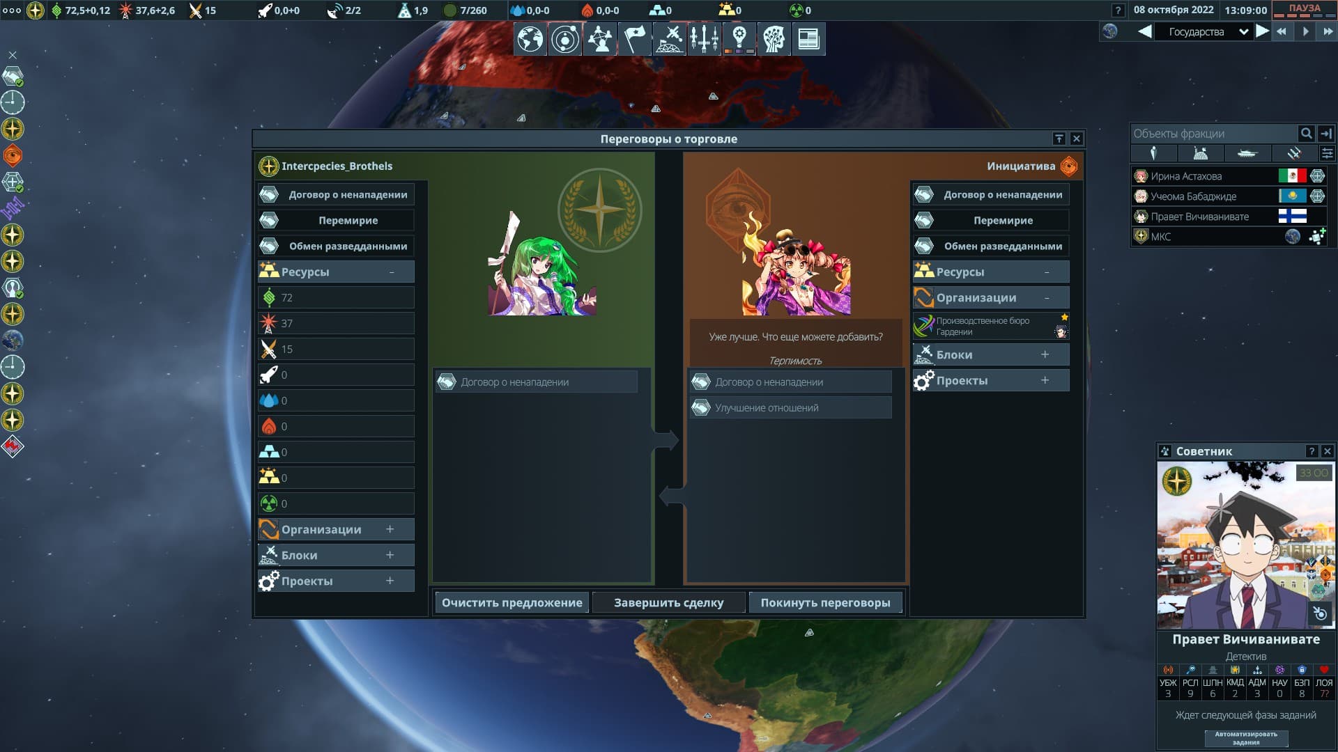 Не стоит забывать и о многочисленных модах. Они привносят как косметические изменения, так и меняют баланс игры. Моды меняют возможности фракций, доступность и обилие ресурсов, характеристики советников. В какой-то момент я поставил мод, который меняет портреты советников на персонажей из аниме – чтобы их было проще различать. Помогло!