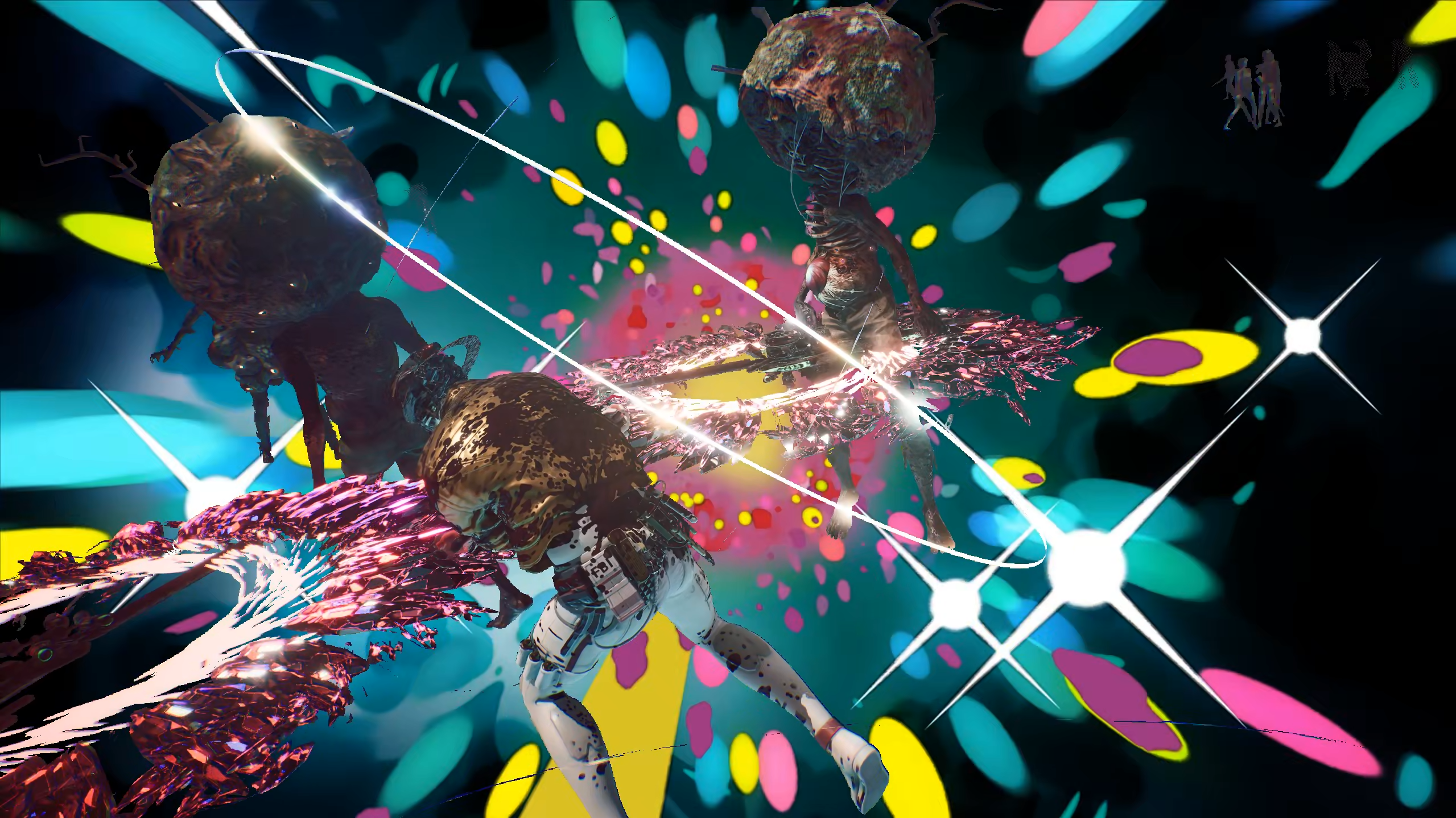 И это не просто хаотичная свалка визуальных трюков, а вполне осознанное путешествие по разным эпохам медиа — от аркадных автоматов 80-х и 16-битной ностальгии до экшенов времён Xbox 360 и современного 3D. Игра пропитана эстетикой разных поколений и откровенно постмодернистскими приёмами.
