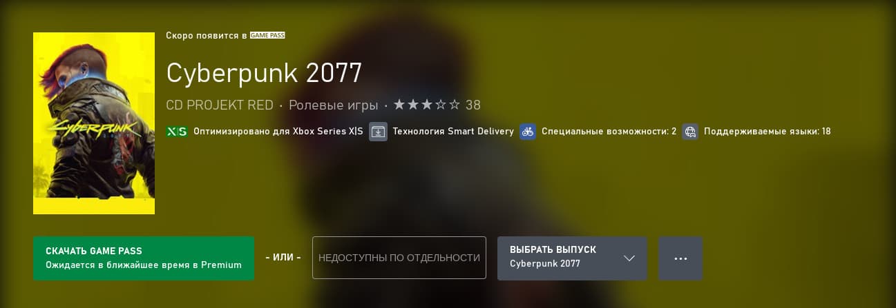 - Cyberpunk 2077 (Ролевой экшен). Это могла быть игра поколения, но на базовой Xbox One игра на старте была практически неиграбельной: просадки до 15 кадров в секунду, вылеты, долгая загрузка текстур. После патчей ситуация улучшилась, но даже сейчас это не лучший способ познакомиться с Найт-Сити. На Xbox One X опыт значительно лучше, но идеальным его не назовёшь. Да, играть в Cyberpunk 2077 лучше на ПК или Series X|S. Но не рассказать про эту игру было нельзя. Так что пусть с оговорками, но попробовать Cyberpunk 2077 на Xbox One можно. Игра ожидается в Game Pass. Обзор игры Максима Драгана.