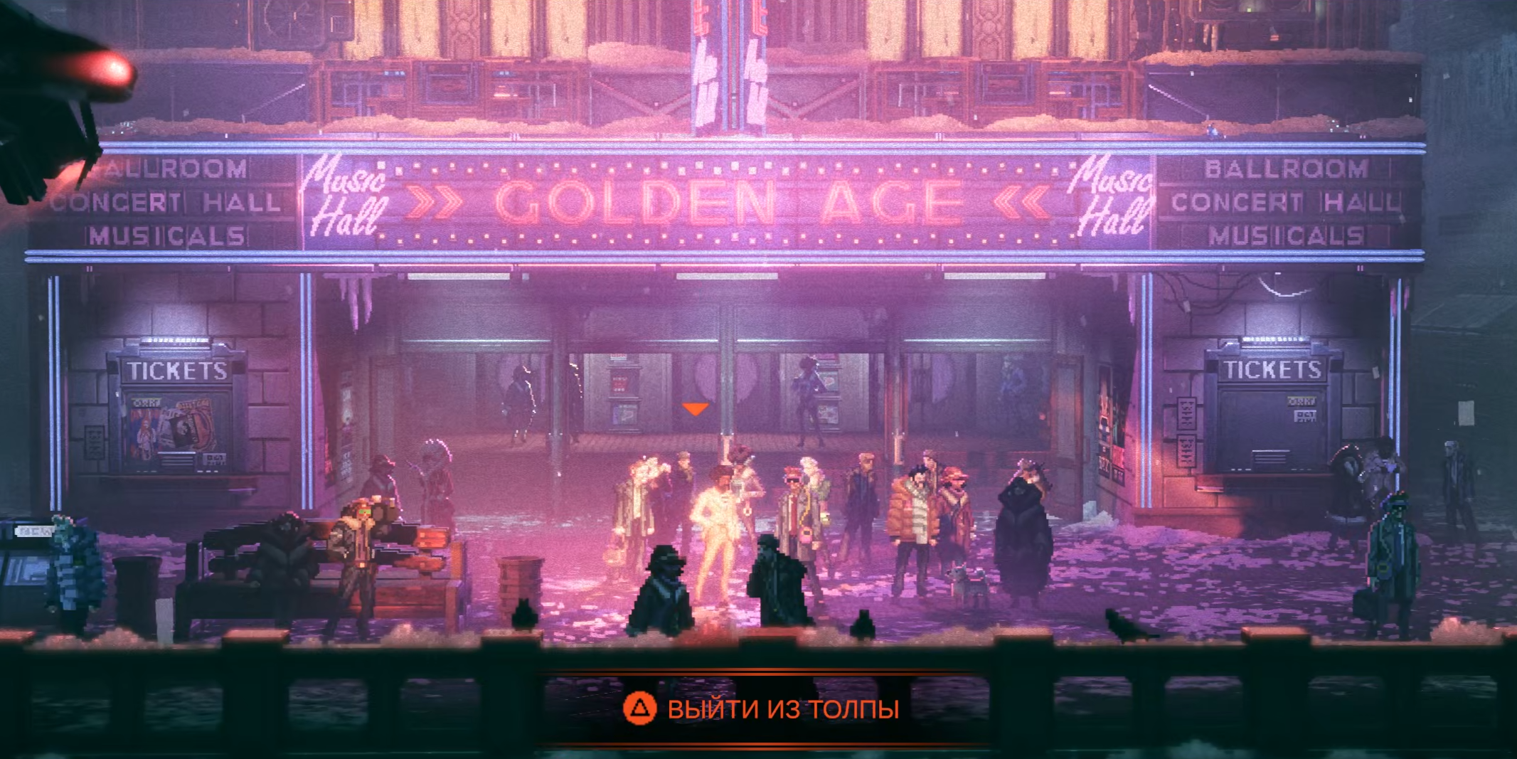 Игра постоянно работает с ракурсами, фокусом, приближениями, пролётами камеры и внутренним монтажом прямо во время геймплея. Здесь чувствуется не только сильный арт-отдел, но и по-настоящему свежий взгляд на то, как можно использовать киноязык в пиксельной игре. Я не могу сходу назвать другой пиксельный проект с настолько эффектной кинематографичной постановкой. И если кто-то готов меня в этом переубедить, я с интересом посмотрю на примеры.
