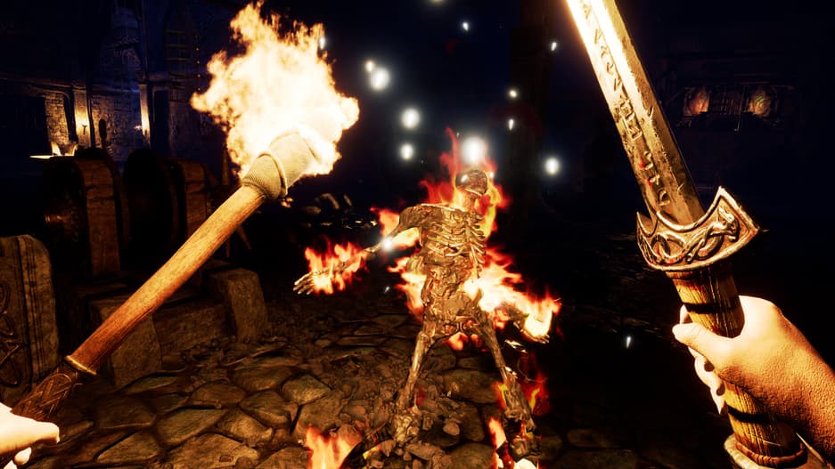 Щит можно пробить только парированием. И чем сильнее враг, тем сложнее вскрывать его оборону. На этом уровне сложности враги охотно блокируют ваши судорожные удары, обездвиживают и выбивают оружие из рук. Битвы становятся сразу продуманными и требуют физической активности, особенно когда на арене более трёх врагов.
