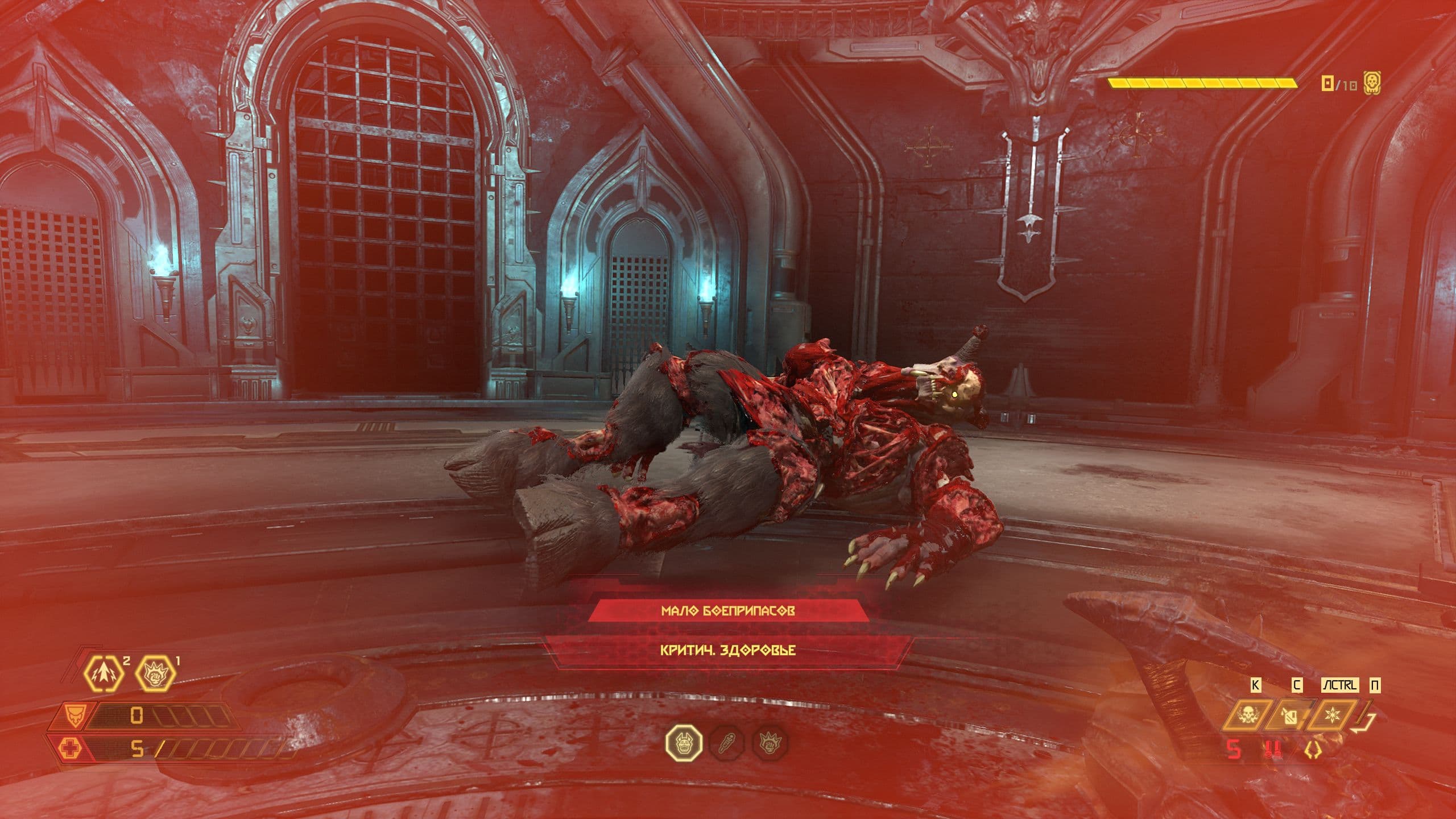 Говорите, патроны лежат под ногами героя? Да, но их немного, и они являются лишь подспорьем. Местная бензопила больше не напоминает оружие последней надежды из Doom 2016. Треть запаса топлива бензопилы пополняется автоматически, чтобы снова и снова резать обычных противников и выбивать из них ресурсы. Разбросанные по округе аптечки тоже разжалованы до приятного бонуса, а основным источником здоровья для Палача становятся добивания. Такой подход влечёт за собой череду спорных решений.