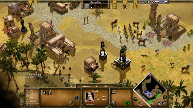 Кто запамятовал концепцию сериала «Age of...», тот поначалу может попасть впросак, несмотря на подробное обучение. Например, добыча ресурсов. Дерево и золото — куда ни шло, хотя у каждой расы свои особенности. Еда... Где?... А вот она, по лесам бегает. После небольших раздумий отправляешь крестьян на охоту, пока они не научатся возделывать землю. Вера — куда более капризный ресурс, причем у разных рас она вырабатывается особенным образом. Греки молятся в храме, египтяне возводят статуи своим богам, северяне сражаются, а представленная в дополнении The Titans раса атлантов получает Веру автоматически.