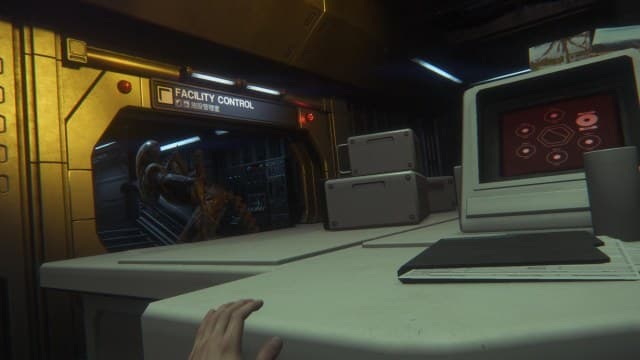 Первые три часа кампании удались, особенно первое знакомство с ксеноморфом. Аккуратно бродишь по локации, постоянно смотришь на датчик движения и боишься малейшего шороха. От чужого можно спрятаться в шкафу или под столом и надеяться, что тварь прекратит поиски Рипли. К слову, при активации датчика движения изображение размывается, а если посмотреть вдаль, держа датчик в руках, то картинка на нем становится неразборчивой. Занятная находка. Увы, восторг со временем проходит.