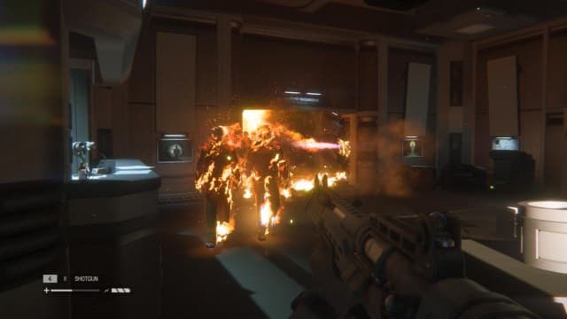 От ксеноморфа можно отбиться, в частности, обдав его струей пламени из огнемета. В этих сценах он забывает о своей прыти и медленно идет в сторону Рипли. Может оттолкнуть героиню и с позором убежать. Подобное поведение сморится смешно и противоестественно. Авторы Alien: Isolation не стали утруждать себя прорисовкой ранений на теле монстра, так же как забыли про кислоту в его венах.