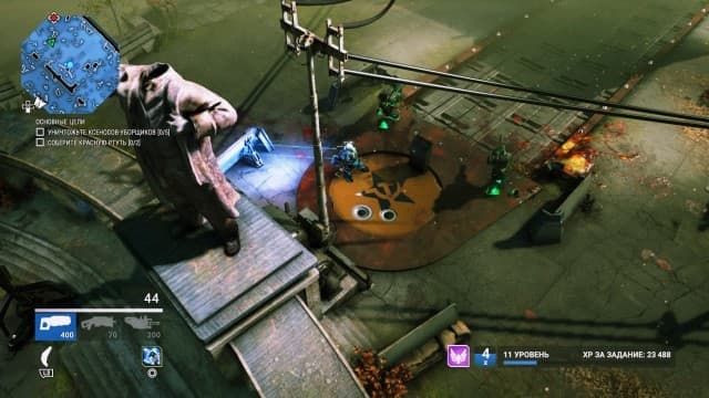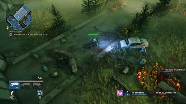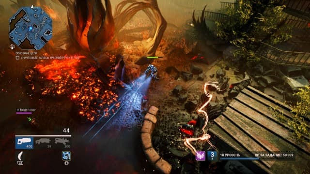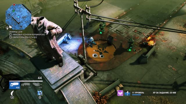 Видов оружия, увы, немного. С начала до финала приходится бегать с автоматами, дробовиками и револьверами. Основной интерес держится на знакомой по ролевым играм системе выпадения вещей. Чем выше уровень героя, тем более убойные пушки ему попадаются. Они традиционно бывают обычные, редкие, эпические. Их характеристики можно модифицировать случайным образом, а также улучшать, встраивая специальные ядра. И чем выше класс оружия, тем больше ядер в него можно запихнуть, чтобы увеличить повреждения, размер обоймы, скорострельность. Бывает, что с одним хорошим револьвером 15-го уровня бегаешь до 18-го, несмотря на изобилие выпадающих из врагов и сундуков вещей.