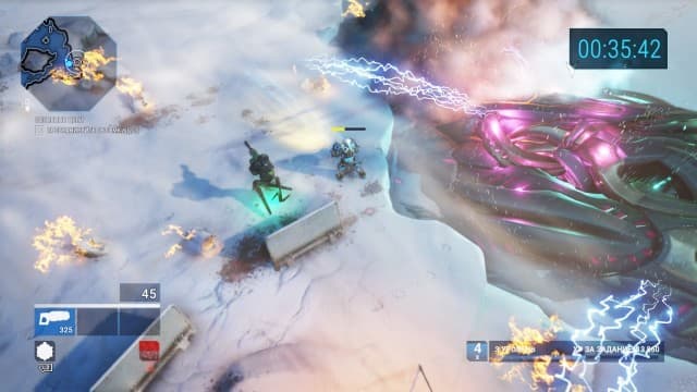 Сетевой код достаточно стабилен, чтобы не жаловаться на задержки, но не идеален. Иногда встречаются проблемы, приходится выходить из группы, искать других напарников. Подбор партии реализован просто. Перед стартом миссии можно увидеть, кто еще в данный момент ее проходит, и присоединиться. Бегаем, стреляем, получаем удовольствие от праздничных фейерверков на экране. Хозяин игры обладает привилегиями: он определяет следующую миссию, к нему автоматически переносятся отставшие или убежавшие в самоволку бойцы. Так что, хочешь ты того или нет, воевать приходится в группе.