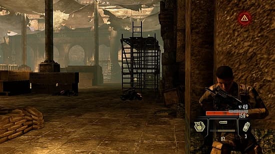 Как это часто бывает, хорошая идея и достойная реализаций разминулись. Нет, обвинять локации в излишней линейности нельзя. Разработчики не поленились и создали арены с обходными путями. Возможностей пробраться по крыше или найти тайную тропинку хоть отбавляй. Однако, несмотря на старания, и стрельба, и тихие вылазки превращаются в натуральную клоунаду. Кажется, сегодня все освоили систему войны из-за укрытий. Но только не Obsidian. «Приклеиваться» Тортону дозволено не ко всем стенам и объектам. К каким – метод научного тыка в помощь. Не меньшей проблемой является камера. Она расположена так близко к спине Тортона, что зачастую за ней ничего не разглядеть. Иногда герой спотыкается о небольшие объекты просто потому, что они находятся вне поля зрения. Также оператор боится высовываться и прячется вместе с Майклом от вражеских взглядов в безопасном месте, из-за чего оценить обстановку на поле боя не представляется возможным. Жутко раздражает во время операций.Поведение врагов лучше всего описать, словом «придурковатое». Они перемещаются только по нелогичным траекториям, пытаются прострелить стены, обожают сбиваться в отряды и превращаться в неподвижные статуи. В попытке убежать от героя начинают медленно карабкаться по лестнице, что делает их лёгкой мишенью. Даже с меткостью испытывают серьёзные затруднения. Снайпер с пары метров в упор может промахнуться. Такие недочёты превращают прохождение за солдата в неприглядную пострелушку.