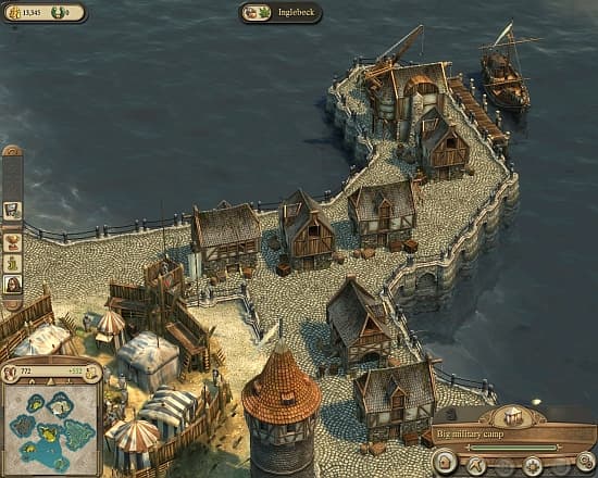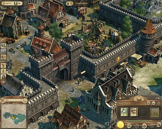 Появляются зажиточные горожане не из воздуха, а из местного населения. Как только удовлетворены все потребности конкретного социального слоя, дома модернизируются и перестраиваются, а жильцы переодеваются в новую статусную одежду. Например, если у ремесленника-горожанина на столе регулярно есть рыба с пряностями и кувшин яблочного сидра, в сундуке лежит льняная рубашка, а через дорогу стоит церковь и трактир, то такой житель с большой вероятностью станет патрицием. В новом статусе потребности растут – регулярно необходим свежий хлеб, выдержанное пиво, одежда из кожи и пара книжек. В деревянную церковь богачам ходить уже зазорно – придется построить каменный собор. Трепетно относятся первые буржуа и к своей безопасности, поэтому приют для бездомных и долговая тюрьма обязательно должны украсить городской пейзаж. Довольный жизнью патриций – это уже настоящий аристократ, с большим домом, вместительным кошельком, предпочитающий меха вместо кожи, мясо вместо рыбы, и вино вместо пива.Растить своих богачей – процесс затратный и хлопотный. Необходимо не только тщательно планировать каждую производственную цепочку, но заранее обеспечить ресурсы и стройматериалы для ее возведения, а также подготовить необходимое для нормальной работы сырье и предусмотреть свободное место на складе. Производство должно быстро врасти в экономику, дать эффект для развития города, следующего звена переработки или поддержать торговлю. Остановка и простой грозит серьезными потерями, как в денежном эквиваленте, так и возможными изменениями в социальной структуре. Не получая привычные для своего статуса товары, горожане начнут в прямом смысле «опускаться» на самое дно, вплоть до полного разорения.Важный момент для развития города – обеспечение первичными ресурсами для строительства. С деревом и камнем проблем никаких, но изготовление собственных инструментов может застопорить всю экономику. Дело в том, что строительство шахт для добычи железной руды, плавильных печей и мастерских, разрешается не сразу – необходимо набрать критическую массу жителей. Пока идет этот небыстрый процесс, велик соблазн растратить стратегический запас инструментов. Хорошо, если у ближайших торговых партнеров найдется, что предложить игроку. В противном случае, сценарий придется переигрывать. Аналогичная ситуация с защитой своих торговых караванов и границ. Пока появятся патриции, открывающие доступ к оружейным мастерским, или аристократы с тяжелой артиллерией, под давлением корсаров и конкурентов игрок рискует потерять важные острова.