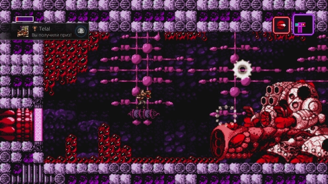 Карманы Трейса постоянно пополняются по мере прохождения кампании. Какие-то находки надолго становятся верными спутниками, иные служат ключами к указанным дверям, и про них быстро забываешь, а другие обзаводятся новыми функциями. Героя заставляют осваивать все чудеса инопланетной техники и комбинировать их. В этой составляющей Axiom Verge если не превосходит объект подражания, но вплотную к нему приближается.