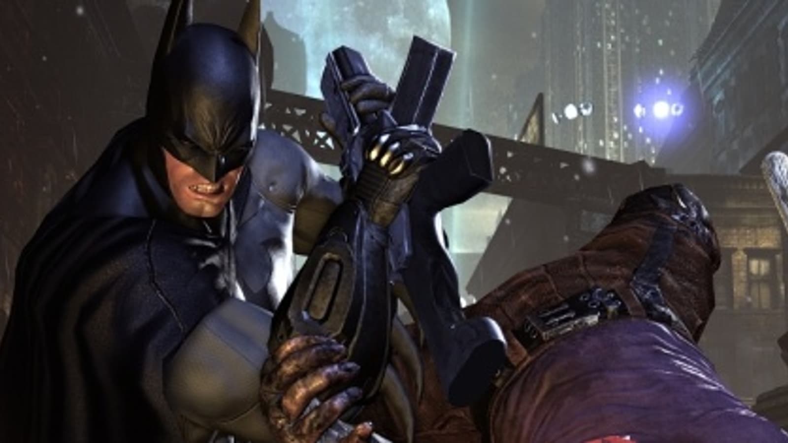 Основа боевой системы осталась нетронутой. Комбинации ударов строятся посредством методичной долбёжки по одной кнопке. Неприятели любезно сообщают пиктограммой над головой о том, что они собираются ударить Тёмного Рыцаря (теперь и на максимальном уровне сложности). Герой кувыркается по арене с легкостью, несвойственной обвешанному стальными гаджетами здоровяку.Авторы попытались компенсировать простоту боевой системы развитием «вширь». Жизнь в Аркхам Сити накладывает свои отпечатки, и неприятели вооружаются. Бэтмену противостоят бандиты не только с кулаками или палками, но и с заточками, некоторые прикрываются щитами, умеют отвешивать неблокируемые удары или облачены в тяжелую броню. Но методы борьбы с ними просты и ограничиваются очевидными приёмами.Значительно расширился и арсенал гаджетов. К привычному бэтарангу добавились мины-липучки, превращающие недругов в ледяные глыбы, пистолет с электрошоком и прочие чудеса инженерной мысли Wayne Industries. К сожалению, обо всех этих устройствах в бою вспоминаешь либо случайно, либо когда без них не обойтись, поскольку удары, перехваты, кувырки остаются главным и наиболее простым решением.Главным же недостатком рукопашных поединков остался странный подход к сложности. Враги слишком выносливые. Их молотишь, они падают, встают, потом опять и опять. Богатырские удары Бэтмена кажутся невесомыми, не причиняющими вреда неваляшкам. Здесь нет разящей силы контратаки и перехвата.