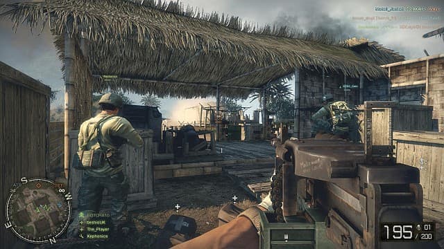 В целом, перед нами Bad Company 2, раскрашенный в цвета душных джунглей. Если бы это дополнение было государством, то его флаг состоял бы из трех элементов - грязи, крови и огня. Изношенное оружие с заляпанной оптикой, стертые приклады и стволы с персональными надписями да нацарапанными рисунками здорово передают атмосферу этого чудовищного конфликта. Показывают, что солдаты уже не первый день торчат на передовой, а головы их забиты отнюдь не оптимистичными мыслями. Дополнение приносит с собой пять новых карт (одна из них откроется со временем и взята прямиком из оригинального Battlefield: Vietnam), которые представляют не столько свежий антураж для боевых действий, сколько непаханное поле для тактических решений. Среди обгорелых пальм и рисовых полей особенно выделяются известные вьетнамские тоннели, ставшие серьезной угрозой для солдат, не привыкших к ближнему бою. Только тот, кто лучше работает ножом и дробовиком, выйдет живым из схваток в тесных окопах. Единственное, что расстраивает: на картах слишком невелика роль расхваленного функционала Destruction 2.0. Разрушать тут, кроме вышек да стен редких хижин, нечего.