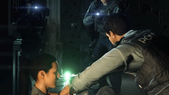 А еще тут есть то, что создатели называют громким словом «расследование». Герою надо искать улики. Для этого у него есть специальный прибор, который жужжит, когда рядом находится какой-нибудь интересный предмет. После этого надо достать сканер и внимательно все сквозь него рассмотреть. Что подсветит зеленым — то надо «анализировать». Ценности никакой, историю найденные улики никак не двигают. Порой персонажи вообще не знают, как комментировать найденный предмет и зачем это вообще надо. Такое вот «расследование».