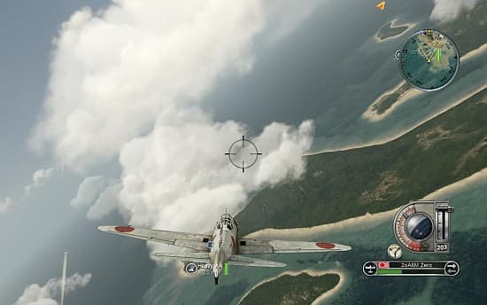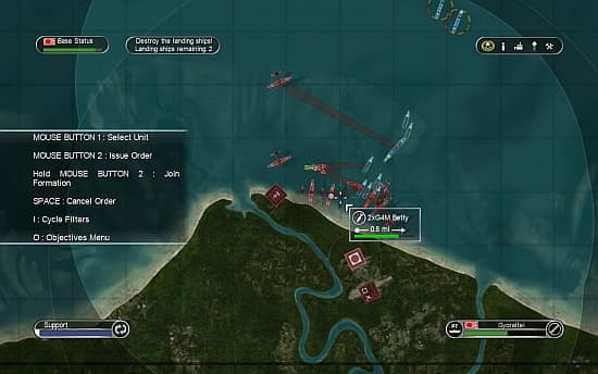 Интерфейс командира также осваивается без проблем. Радиальное меню позволяет быстро и точно отдавать приказы, а для того, чтобы переселиться в другого воина достаточно просто навести на него прицел и нажать кнопку. Прежде чем заставить американцев/японцев подписать акт о безоговорочной капитуляции, придётся пройти четырнадцать миссий за каждую сторону. Всего в игре присутствует два типа операций. Первый называется Combat. «Битва» может быть воздушной, надводной или подводной. Герою выдают определенное количество самолётов, кораблей или субмарин, и необходимо, используя только доступный тип войск, выполнить поставленную задачу: уничтожить вражеский конвой, защитить аэродром от надвигающейся угрозы и прочие. Переселяемся в транспорт поудобнее и приступаем к аркадным потасовкам. А вот активно применять навыки главнокомандующего заставят Combined Fleet Operations. Во время «операций» командир получает в распоряжение группировку войск, в состав которой входят различные подразделения. Данные миссии построены по принципу: «Вот вам армия, вот объекты, которые нужно уничтожить – действуйте на свое усмотрение». Тут уж приходится обращаться к стратегической карте, чтобы указывать подчиненным цели и объединять их в формации.