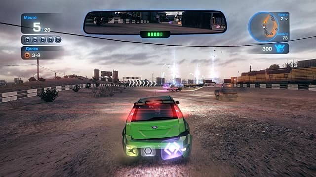 Жаль, что у автомобилей только бамперы мнутся, стекла трескаются и незначительные вмятины отображаются. Разрушительных автокатастроф в стиле Burnout нет. Впрочем, и без них есть, на что посмотреть. Авторы Geometry Wars расстарались и нарисовали красивейшие эффекты взрывов, молний и силовых полей, из-за чего гонка от старта до финала воспринимается безумным праздничным фейерверком.