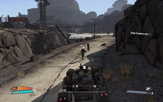 Враги тупы, но упрямы и агрессивны, нападают сообща, поэтому схватки с одноуровневыми противниками совсем не просты. На передовую выбегают парни с томагавками, за ними смешно ковыляют карлики с дробовиками, откуда ни возьмись появляется бугай с кувалдой, а на заднем фоне перебегают с места на место потерявшие вас из вида ребята с автоматами. Приходится использовать всё, что имеется в карманах и вовремя стрелять по щедро расставленным взрывоопасным бочкам.Население Пандоры довольно разнообразно. Здесь водятся обыкновенные бандиты всевозможной комплекции и с разными оружейными вкусами, но больше всего приходится сражаться с коренным населением из ящеро- и насекомообразных прыгающих и летающих монстров. Часто они выступают в сопровождении усиленного мини-босса, а то и нескольких. Чем дальше заходим вглубь пограничных земель, тем более интересные и опасные способности появляются у врагов. Требуется менять тактику, приспосабливаться к изменившимся условиям. Разумеется, в Borderlands есть и боссы. Здоровые, опасные твари, к которыми на свидание лучше идти с преимуществом в пару уровней. Всё новые и новые локации открываются по мере прохождения. Новые пещеры, прибрежные свалки, заброшенные заводы и прочие места обитания боссов и их миньонов. После перезагрузки враги возрождаются, а содержимое сундуков вновь наполняется ценным и не очень скарбом. Поэтому, даже если вас вновь отправят в уже посещенную локацию, всегда есть чем заняться. А для ускорения путешествий разработчики придумали аж три способа. Первый – на своих двоих, бегом. Второй – на машине с пулеметом или гранатометом (на выбор). И третий – через сеть телепортеров, установленных в каждой локации.