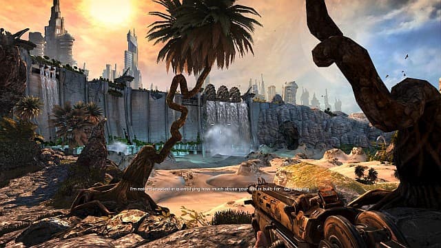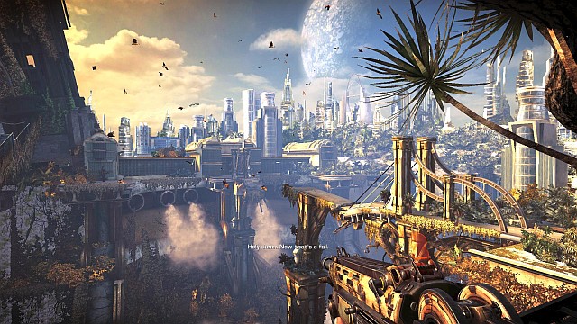 Что-что, а внешний вид Bulletstorm можно только нахваливать: художники и дизайнеры из People Can Fly умеют создавать красивые миры. Планета пленяет роскошными видами полуразрушенных городов, эклектикой построек местных варваров, тёмными сводами подземных комплексов. Внешний вид «падшего рая», сочетающего в себе лучшие идеи Bioshock и Gears of War, удался на славу. Даже текстуры низкого разрешения не способны испортить процесс любования завораживающими пейзажами.