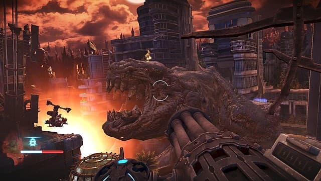 За страшные предсмертные муки врагов Грейсону начисляют очки. Чем разнообразнее действует машина смерти, чем изощрённее казни в её исполнении, тем больше валюты капает на виртуальный счёт героя. К примеру, за простое попадание в голову выдают 25 баллов, а за простенький skillshot - 100. Почувствуйте разницу. Деньги приходится тратить на апгрейды для оружия и закупку амуниции. Вот и надо задумываться о нестандартных убийствах, иначе останешься с ботинком и хлыстом против обезумевшей толпы. Апгрейды ограничиваются возможностью разблокировать альтернативный режим стрельбы, улучшить его эффективность и общий запас патронов.В результате загадочного катаклизма жители цветущей планеты превратились в одержимых насилием варваров, которые и между собой воют, и пришельцев встречают негостеприимно.Мутации негативно сказались на мозговой деятельности, но не на зрении. Враги, вооружённые огнестрельным оружием, хаотично мечутся по аренам. На Грейсона бегут варвары с тесаками в руках. Обмотанные взрывчаткой камикадзе заставляют всегда быть на чеку. На дальних балконах материализуются снайперы. Отдельные недоброжелатели уворачиваются от хлыста, другим надо стрелять исключительно в определённые точки, а здоровенные пулемётчики вынуждают в срочном порядке искать укрытие.