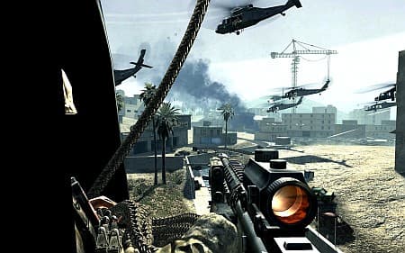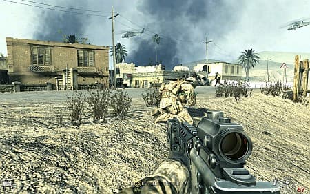 В данном случае, все идет строго по шаблону. Арабские террористы вместе с русскими потрясают «немирным атомом», а мы их одного за другим щелкаем, чтобы, как водится, в последнее мгновение остановить угрозу. Избито, да. Но у разработчиков игры есть ровно две огромные заслуги. Во-первых, в серии Call of Duty наконец-то появилась крепко сбитая сюжетная линия с интересными, запоминающимися персонажами. Во-вторых, постановка. Масштабная, легко оперирующая судьбами простых людей и целых народов, выдающая такие сцены, которые делают неактуальными такие «поделки» кинематографа, как «Падение черного ястреба» и «Спасение рядового Райна».