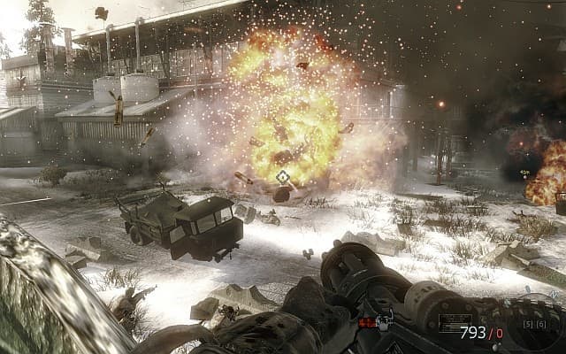 Что касается собственно игрового процесса, то он типично Treyarch'овский. Бесконечные толпы леммингов, дурноватые напарники, прущие напролом, меткие и глупые «плохие русские» (кубинцы, вьетнамцы и пр.). На нормальном уровне сложности прохождение не предлагает никаких сложностей (кроме неумного гейм-дизайна, отрицающего всякое своеволие), а вот если забраться повыше, начинаются проблемы. Только показываешь физиономию из-за угла, как двадцать снайперов из разных точек локации мгновенно переключаются на героя. Умираешь, не сообразив, что-кто-откуда. Весь мир против нас, но куда им. Мы бежим вперед и на манер супер-героев из дешевых боевиков уничтожаем врагов сотнями. Неумение ставить сцены Treyach компенсировали масштабом. Вертолеты и самолеты роятся в небе, враги засели под каждым деревом, земля вспухает миллионами взрывов. Нам дают прочувствовать мощь дробовика в руках и силу магнума. Пострелушки на технике, полет на вертолете с уничтожением, кажется, всех населенных пунктов Вьетнама - словно попал в зал аркадных автоматов. К слову, если подергаться в пыточном кресле (так тут оформлено игровое меню), встать, подойти к компьютеру и ввести команду DOA, то окажетесь в потешном шутере Dead Ops Arcade в стиле незабвенного Crimsonland.