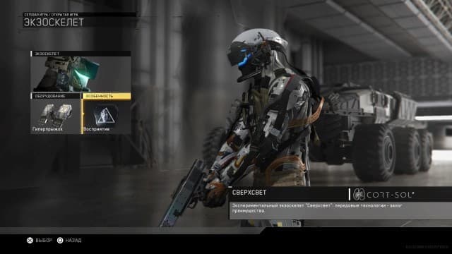 Что в мультиплеере сделано хорошо, так это прокачка героя, постепенное открытие нового оружия, экзоскелетов, модулей и способностей; получение костюмов, шлемов и камуфляжных раскрасок; выполнение множества разнообразных заданий, стимулирующих вас пользоваться определёнными пушками, участвовать в объектно-ориентированных режимах, убивать противников толпами. Играешь уже не ради процесса, а ради прогресса своей учетной записи. Тем более после получения первого престижа появляется возможность открыть классическое оружие из предыдущих игр серии Call of Duty. И легендарная винтовка M1 оказывается гораздо круче большинства футуристических аналогов.