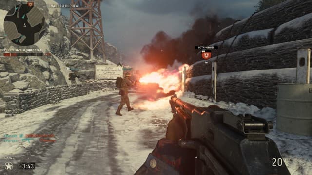 С другой стороны, кампания пытается быть бодрой и разнообразной, в традициях серии. И это ей почти всегда удаётся, но без чувства меры. Изо всех сил стараясь сделать драму с прямыми цитатами из известных фильмов о войне, игра порой сваливается в шоу имени Marvel, где герои умудряются выживать в эпицентре апокалипсиса и в одиночку уничтожать тысячи тупоголовых приспешников злодеев. Мозгов у краутов не прибавилось со времён первой части Call of Duty (как и у напарников), так что герой тут каждой бочке затычка и вынужден под ободряющие крики каждые пять минут совершать подвиги. Зенитки, пушки, снайперские винтовки, пулемёты, баранка автомобиля? Наш парень со всем справляется без труда! В кампании есть уровни, где мы играем за шпиона, лётчика и танкиста, но сделано это исключительно для галочки, чтобы можно было добавить пару очков к «разнообразию». Реализованы эти миссии убого.