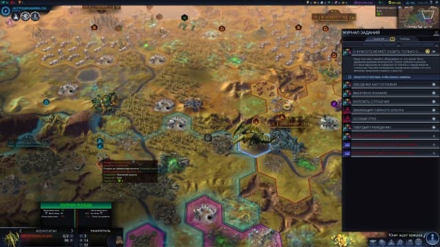 Поэтому древо исследований отсутствует. Вместо него появилась «паутина». Игрок начинает исследования с центра и постепенно продвигается к краям. Он открывает и учится добывать полезные ископаемые, здания, технику и новые виды войск. Чем ближе к краю, тем больше времени требуется на проведение исследований и тем интереснее они становятся. Их много, глаза разбегаются. Сложно понять, что надо развивать в первую очередь. К счастью, как и в прежних играх серии Civilization, тут есть советники по науке, войне и экономики, которые подсказывают, на что требуется обратить внимание.