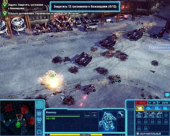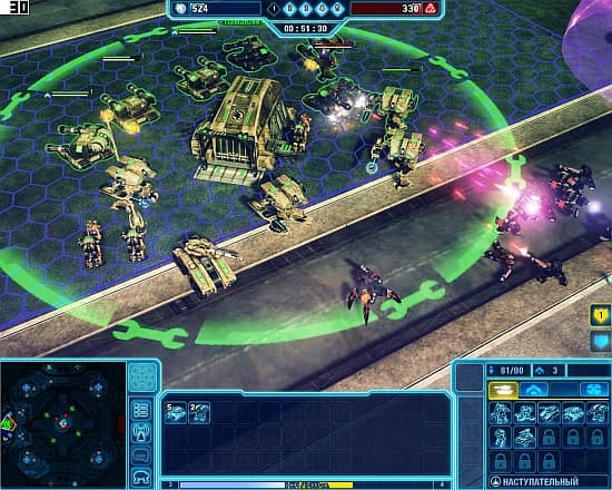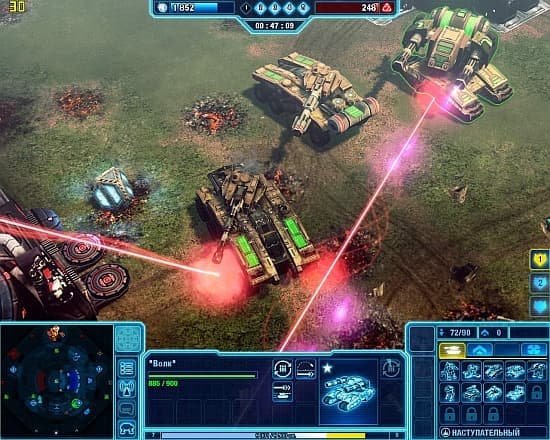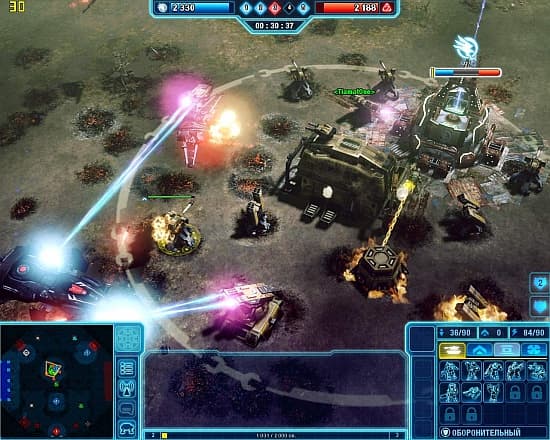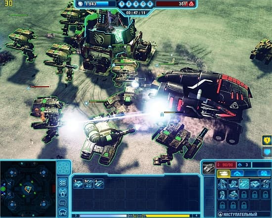Для начала вам нужно определиться с ролью: атакующей, защитной или группы поддержки. Делается это посредством выбора одного из краулеров - колоссальных мобильных платформ, способных разворачиваться в базу на любом открытом месте. С атакующей всё ясно. У вас будут самые мощные боевые подразделения с впечатляющей огневой мощью. «Мамонты», «Аватары», «Мастодонты» и прочие творения безумных гениев военной промышленности. Ваша задача бить больно, точно и вовремя.Защитникам предоставляют эксклюзивную возможность строить турели и дзоты, размещать их вокруг аванпостов и всячески опровергать утверждение, о том, что универсальной обороны не бывает. Поддержка, к сожалению - это не фигуристые девушки в коротких юбчонках, песнями и плясками пробуждающие в бойцах положительные качества. Это, по большей части, авиация и ремонт. Полезность также проявляется в мгновенно применяемых навыках, позволяющих отремонтировать всю технику в округе, запускать спутники-шпионы и вообще всячески обламывать врагу заслуженное удовольствие от грамотно проведённой атаки.Если вы играете дуэль, то в теории любая роль подойдёт. То есть вы можете выиграть, не взирая на специализацию. В теории. На практике всё очень запутанно, сумбурно, да и просто непривычно. Ресурсов нет. То есть они имеются, но нужны для победы, для набора заветных 2500 очков, и на производство подразделений никак не влияют. Разбросанные по карте контрольные точки вы должны захватить как можно раньше, вцепиться в них гусеницами и ни за что не отпускать – враг будет делать тоже самое.Ещё имеются кристаллы тиберия и очки командования. Первые периодически доставляются на карту и тут же утаскиваются самым шустрым солдатом в сторону начального расположения базы. Кристаллы используются для улучшения характеристик отрядов и перехода на новый уровень технологий, которых всего три. Поднявшая кристалл боевая единица резко теряет в скорости, к тому же обозначается на карте видимым для вас и врага сигналом, так что не посылайте хилых и медленных товарищей за топливом вашей победы.