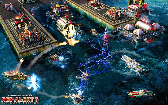 Тут ведь надо строить домики на воде и на суше. Заказывать войска - много и разных. Как-то управляться с ними, активировать способности, и делать все это быстро - по всей карте сразу. Без паузы! Не сразу удалось серию Command & Conquer помирить с консольным контроллером. Сначала был печальный опыт Tiberium Wars. Затем в Kane’s Wrath сделали шаг в правильном направлении. Но только в Red Alert 3 удается управляться с армией почти с тем же комфортом и скоростью, что и на компьютерах. Всего-то надо было, отказаться от привычных стереотипов и плясать от самого начала.
