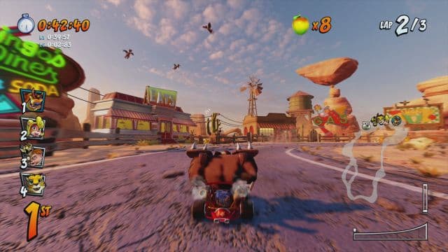 Crash Team Racing Nitro-Fueled имеет бледный вид на фоне Mario Kart 8 Deluxe, и это логично. Было бы странно, если бы ремейк игры для первой PlayStation обошёл наивысшую на данный момент точку развития серии с почти тридцатилетней историей. Впрочем, работа студии Beenox щеголяет узнаваемыми персонажами, отточенной механикой и не находится в заложниках у Nintendo Switch.