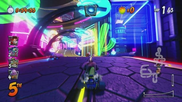Игра привлекает той самой простотой, которая — залог успеха. Да, представленные трассы (18 из Crash Team Racing и 13 из CrashNitroKart) не кружат голову запутанной архитектурой и обилием срезок, но они отличаются друг от друга. Где-то преобладают ровные дороги, где-то больше резких поворотов, где-то встречаются источники опасностей вроде растений-людоедов и огненных ловушек, а где-то на первый план выходят трамплины и головокружительные прыжки. Видов оружия и усилителей чуть больше десятка, включая отличия на уровне количества зарядов «одна ракета» или «три ракеты», но сильные бонусы встречаешь со слезами радости на глазах.