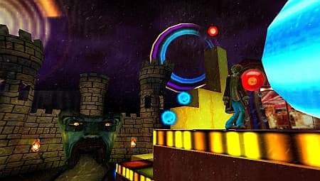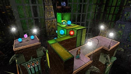 Реализовано это просто, но гениально. Перемещение между 2D- и 3D-режимами осуществляется по нажатию левого шифта. Дэнни просто топает ногой по полу и картинка… становится плоской! Все меняется в мгновение ока: там, где раньше была лестница, теперь предстает наглухо закрытая для прохода стена. А в местах, только что зияющих пустотой, неведомым образом появляются платформы, открывающие путь к дальнейшему прохождению. Поворот камеры на 90 градусов, щелчок по клавише – и архитектура уровня вновь меняется до неузнаваемости! Перемещаем камеру строго над головой героя, жмем CRUSH-кнопку - и Дэнни получает возможность пробежаться по «крышам» зданий, которые ранее были слишком высоки для него.