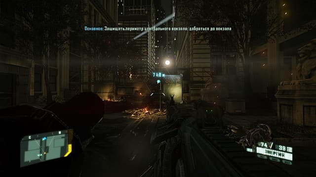Разработчики всё же пытались выкрутиться из ограниченных рамок. На аренах хватает окольных путей и стационарных пулемётов для любителей огневой мощи. Но все альтернативные маршруты любезно подсвечиваются. Достаточно активировать специальный режим, на экране появляются соответствующие указатели, где и что надо сделать. Также у героя в распоряжении есть нанозрение (читай, тепловизор), который превращает недругов в лёгкие мишени и позволяет спокойно избегать патрулей.Во второй половине приключения, когда появляются инопланетяне, разработчики отказываются от вариативности. И начинается… «Продержаться на точке!», «Прикрыть отход мирного населения!», «Морские пехотинцы никогда не отступают!» – такие проблемы сваливаются на героя одна за другой. Пока не уничтожишь все волны, выход останется закрытым. Приходится уничтожать пришельцев одного за другим снова и снова. Но это не Halo, где каждый бой - интересное, серьезное испытание. Видов инопланетян тут немного: парочка разновидностей рядовых, да здоровенные «танки» со щитами. «Кальмары» (именно так их прозвали) не умнее гуманоидов, отличаются только толстой шкурой. С пришельцами связана одна особенность. Из поверженных тушек выпадает особый материал, необходимый для усовершенствования нанокостюма. Герой получает в своё распоряжение усиленную броню, отражение пуль, ускоренную регенерацию и прочие бонусы. Толковое подспорье, ускоряющее далеко не самый веселый игровой процесс.Боссы имеют привычку повторяться. Для их устранения нужно базуку, гранаты и взрывчатки побольше. Фантазии авторов не хватило даже на финальное противостояние. Еще одна перестрелка, веселый ролик, наконец-то титры.