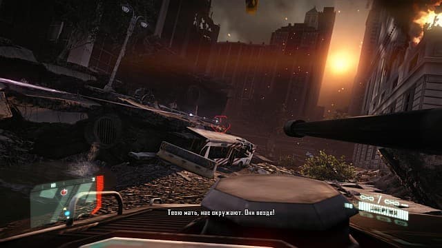 Ладно, оставим в покое сюжет, который был, есть и будет (хотя случаются приятные исключения) второстепенной составляющей шутеров. Самые неожиданные сюрпризы поджидают героя, когда дело доходит собственно до спасения человечества от коварной корпорации C.E.L.L. и злобных пришельцев.Нанокостюм стал значительно проще в использовании. Место радиального меню заняла система «горячих клавиш» и контекстных действий. Больше не надо вручную активировать «максимальную скорость». Достаточно побежать, и герой сам без указки полетит вперед. Пинать автомобили и высоко прыгать также можно, просто зажав соответствующую кнопку. Разве что «невидимость» и «броня», не включаются автоматически. Эти изменения заметно отразились на возможностях Алькатраса. Он стал безупречным солдатом будущего, способный мгновенно подстраиваться под любую ситуацию.Увы, но «идеальное оружие» вскоре превращается в скучающего терминатора, лениво хлопающего газетой сонных мух. Это в Bulletstorm герой вынужденно комбинировал свои навыки для заработка валюты и покупки патронов. Это в Vanquish на Сэма Гидеона оказывалось безжалостное давление со всех направлений. Это в Halo спартанцам противостояли стремительные и сообразительные инопланетяне, способные легко справиться с беспечным супер-солдатом. Crysis 2 не таков.