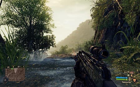 Графика – единственная составляющая Warhead, которая не вызывает вообще никаких нареканий. Потрясающая детализация, отличная система освещения, высокополигональные модели, чёткие текстуры. Растительность, правда, по старинке, материализуется неподалёку, прямо на глазах у героя. Однако арт-дизайн совершенно не изменился. И перед нами выступают те же джунгли с теми же типовыми военными постройками, только в профиль. Производительность подтянули, и на нашей тестовой системе (Intel Core 2 Duo E6750, 2ГБ RAM, GeForce 8800GTX) в разрешении 1440х900 при максимальных настройках без антиалиазинга в процессе путешествия серьёзных просадок производительности не возникало, лишь изредка картинка начинала «плавать», будто в желе.