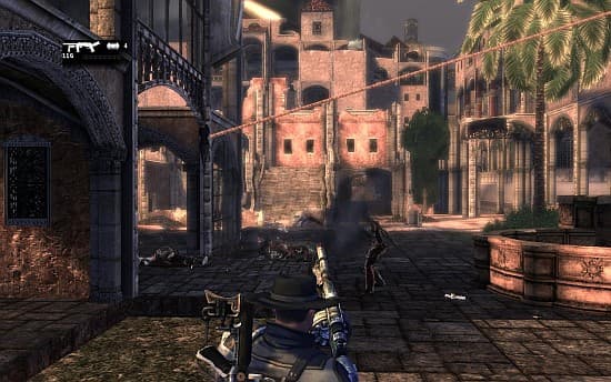 Кроме занятий акробатикой приходится и стрелять. Разработчики пытались воплотить свой рекламный слоган о «вертикальном шутере» и построили огромное количество свободных арен с многоуровневыми домами, по которым можно свободно передвигаться, искать обходные пути, заходить с тыла или с фланга. Горе от ума.Враги просто не знают, что делать на просторных полях сражений! Супостаты обожают гурьбой сбегаться к местонахождению главного героя, а в остальное время болванчики спокойно стоят столбами, нехотя постреливают, не реагируют на пулевые ранения. Расправляться с ними не составляет труда. А ведь в распоряжении Гамильтона имеется и сверхчеловеческая способность – зрение, позволяющее видеть недоброжелателей сквозь стены! Упрощают всё донельзя расставленные повсюду бочки с горючим веществом. Они обладают невероятным радиусом взрыва и быстро превращают гадов в кучу ошмётков. В результате многие столкновения заканчиваются, так и не начавшись.Несколько раз герой встретит бегающих тварей и здешний вариант зомби. Эти виды банально прут напролом, но не всегда добегают – застревают в текстурах. Собственно, самыми опасными недругами являются роботы, единственное уязвимое место которых находится на спине (да сколько можно в этом сезоне?!). Окончательно перестрелки портит саунд-дизайн. Неважно, куда стреляет отважный воин: в бетонную стену, в землю, в стальную дверь или в тело неприятеля – будет слышен лишь звук от выстрелов, ничего больше. Напоследок, нельзя не отметить реализацию поездок на транспортном средстве, напоминающем мотоцикл. Нет, управляется оно замечательно. Но кататься приходится по узенькому коридору, где маневрировать нет практически никакой надобности. Изредка приходится вспоминать про функцию поворота. А так, знай, включай вовремя ускорение, чтобы перепрыгивать пропасти.