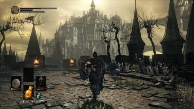 Восхищает оформление мира. Города с готической архитектурой и отдельные поселения напоминают Bloodborne. Но даже с поправкой на вторичность панорамы удивляют величественными видами замков в ночи, солнечным затмением с парящими в небе демонами и роскошным убранством дворцов. Монументальные сооружения уступают место природным пейзажам с гниющими останками монстров. Дизайнеры не поскупились на мелкие детали и скучных коридоров в Dark Souls III совсем мало.