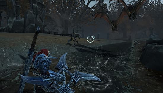 Зрелищность – неоспоримое достоинство сражений. Война одним взмахом клинка отрезает конечности, крошит черепушки, отвешивает смертоносные оплеухи. Он с невероятной легкостью вонзает меч по рукоять неприятелю в глотку и выворачивает внутренности наружу, забирается на холку здоровенной твари и раскраивает её голову. Некоторых мелких созданий он разрывает на части голыми руками, исполинам запрыгивает прямо в клыкастую пасть и вспарывает изнутри. Почти для каждого вида недругов у героя найдется отдельный способ жестокого добивания. Из истерзанных тушек фонтаном брызжет кровь, обезглавленные ангелы падают на землю, раздаётся звонкий лязг железа, звук разрезаемой плоти, по округе разлетаются ошмётки тел. Это ВОЙНА! А Война не щадит никого. Благодаря изуверским, разнообразным казням и внушительному количеству монстров на аренах бои не позволят заскучать. Да и герой, пускай и производит впечатление здоровяка, но умеет не только блокировать и контратаковать, а также молниеносно уклоняться от подач. Поэтому драки получились динамичными, яркими. Да, времени на освоение всех премудростей много не потребуется. Но если вы хотите получить максимум удовольствия (и трудностей!) от сражений, то лучше сразу начинайте с самого высокого уровня сложности.Приключенческой составляющей в Darksiders уделено не меньше внимания, чем боевой. От ровных дорог ничего не осталось. Мир погрузился в хаос, повсюду бездонные пропасти и развалины, и герой постоянно преодолевает всевозможные препятствия. К счастью, с акробатическими трюками полный порядок. Ну и пусть, что Всадник обвешен устрашающими железными латами с черепами. Это не мешает ему обезьянкой карабкаться по стенам, хвататься за карнизы, парить в воздухе (у него есть некое подобие астральных крыльев) и забираться в самые труднодоступные места. Но одного мастерства Принца Персии для достижения заветной цели недостаточно. Игра под завязку набита разного рода загадками. От примитивных «передвинь вот ЭТУ статую на ЭТО место», до заковыристых, требующих нестандартного подхода и заставляющих напрячь извилины. Причём для их решения появляются самые неожиданные предметы и способности.
