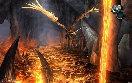 Бессмысленно ожидать какой-то глубины в боевой системе, платформенной части и в головоломках. Darksiders больше походит на аттракцион, но на ПРАВИЛЬНЫЙ аттракцион. Игра не заваливает героя по уши бесполезными возможностями с призывом «развлекайся», а САМА ЗАСТАВЛЯЕТ использовать практически все магические и не очень предметы. Нашли горн – пошли будить големов и открывать проходы в другие локации. Стали счастливым обладателем крюка - Всадник научился цепляться за висящие в воздухе кольца. Оседлали легендарного скакуна по имени Руина – думайте, как избавиться от босса на скаку. Но самые оригинальные задачки связаны с порталами. Прямо как в знаменитом Portal герой может создавать два портала «входа»-«выхода» (только в специально отведенных для этого местах) и перемещаться в пространстве. Этой забаве посвящён внушительный отрезок. Вот уж где фантазия авторов разгулялась. Приготовитесь к самым неожиданным испытаниям. И подобные обязательные развлечения встречаются на протяжении всего путешествия. Изредка действо разбавляется «американскими горками», вроде полёта на крылатом чудище. Одни вещи отправляются в рюкзак, обнаруживаются новые, и интерес не пропадает ни на минуту.На месте и боссы. Поединки с ними обставлены, как и полагается эпичному фентезийному боевику. Многоэтажные создания поражают своими формами и размерами смертоносных клыков, когтей и крыльев. Каждая такая схватка больше походит на шараду. Достаточно понять, КАК бить особо крутого парня и дальше всё становится делом техники и мастерства уклонения от сверхмощных подач.