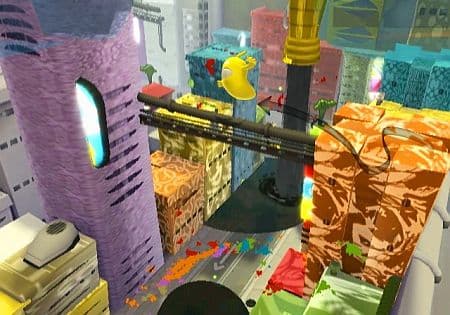 Не хватает смысла в происходящем безобразии? Забавные ролики между миссиями нравоучительно пожурят ханжу и подкинут пару идей для размышления. От начала и до конца игра de Blob – это пародия на тоталитарное общество, стереотипное поведение и общую замученность серыми буднями. Это бунт в мире черно-белых заготовок. Фейерверк эмоций посреди книжки-раскраски. Все начнет меняться сразу после первого шага игрока. Нет. Точнее – с первого переката, ведь главный герой и художник улиц – лишь шарик, наполненный краской. Одно легкое касание любого игрового объекта – и целые дома, столбы, обертки на земле, скалы, бортики, скамейки, машинки, деревья, гирлянды, фонари, мусор и песок изменят свой цвет. Не пугайтесь аллей, полных красной листвы, удивляйтесь зеленым и фиолетовым крышам – колоритный мир маленького большого города постепенно раскроется как бутон редкого растения. После посещения невзрачного тихого района на улицах начнется праздничная фиеста. Следом изменятся здания тоталитарного черно-белого режима. Тюрьмы, полицейские участки, суды, редакции газет, телевизионные центры и радиостудии – после вливания пары ведер краски превращаются в аквариумы, террариумы, фонтаны, футбольные и баскетбольные площадки, танцевальные клубы и гигантский роллердром.