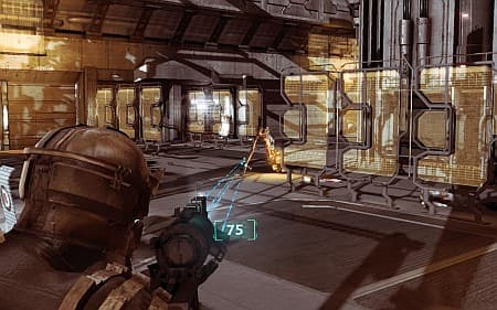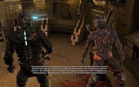 Кстати, с одеждой Айзека связана ещё одна оригинальная особенность проекта. Полоска жизненной энергии отображается прямо на костюме в районе позвоночника, рядом светится уровень заряда стазиса. Инвентарь, журнал, карта, видеозаписи, лица товарищей выходящих на связь, проецируются перед глазами героя. Достаточно прицелиться, и число патронов в обойме появится на орудии. Потеряться невозможно, после нажатия соответствующей клавиши на полу возникнет линия, указывающая путь. Всё просто, наглядно и интуитивно, а отсутствие постоянно болтающихся в разных углах экрана иконок и надписей способствует погружению в атмосферу.