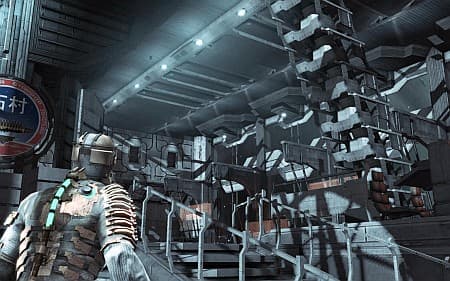 К счастью, дизайн различных частей корабля выполнен отлично. Здесь и технические отсеки, заставленные механизмами, и медицинское отделение с операционной и лазаретом (морг прилагается), и сад с растениями, и жилые комплексы. В каждом есть и узенькие коридоры, и просторные комнаты, и огромные залы. В некоторых трюмах нет гравитации, и Айзек может свободно передвигаться в любом направлении. А в некоторых всё затянуто некой вязкой, пульсирующей субстанцией. Движок собственной разработки выдаёт впечатляющую картинку. Детализированные модели всех видов некроморфов, в которых уделено внимание каждой части изуродованного тела. Чёткие текстуры на окружении позволяют прочесть даже мелкие надписи. Толковая система освещения. Есть всё, что необходимо игре, действие которой разворачивается в закрытых помещениях.