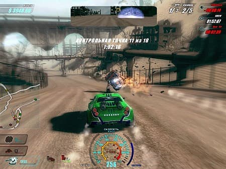 Игрок как будто в вакууме выполняет задания по сносу отдельных зданий, спокойно отстреливает противников, и вообще старается просто доехать живым до финиша. Адреналин уступает место трезвому расчету и не возвращается ни на прыжки с трамплинов, ни на кинематографические трюки виртуальных каскадеров. Кроме того, колоритные, с фантазией слепленные трассы захламлены всякой железобетонной мелочевкой. Расстрелять или взорвать припаркованную технику нельзя, а столкновения носят фатальный характер и в момент замораживают ярость погони. Пропадает и скорость движения автомобиля, и ощущение динамики происходящего.