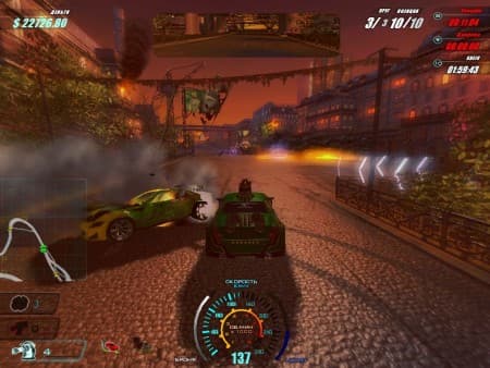 Любоваться на всю эту красоту банально нет времени, да и предлагают нам в течение заездов совершенно другое – перебить оппонентов и сровнять с землей последние архитектурные шедевры. Пулеметы, лазеры, ракеты и самонаводящиеся роботы-терминаторы неплохо помогают прорываться сквозь мясорубку стартовавших машин. Умелый гонщик легко отрывается от преследователей на нитро-ускорителях, минирует трассу, поджигает бочки с горючим и взрывает энергобарьеры, чтобы сократить дорогу к финишу. Временами в дело вмешиваются охранные боты, которые лазерами и снарядами могут остановить фаворита и заставят заново вернуться в общую свалку.
