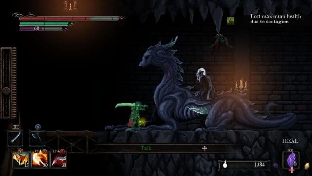 Зато игра старается привлечь историей с частично озвученными диалогами. Речь Соруна почему-то подаётся в текстовом формате, отчего многие разговоры смотрятся странно. В сценарии переплетаются и личная драма, и фокусы с сознанием, и философские рассуждения. Правда, Death’s Gambit полагается на высокопарные разговоры, которыми буквально тычут в лицо. Иногда сюжетные сцены внезапно включаются после гибели героя, что сбивает темп приключения. Умер в схватке с боссом, кровь кипит, жаждешь отмщения… а тебе показывают бессмысленный диалог. Какие-то эмоции вызывает разве что прошлое бессмертного воина.