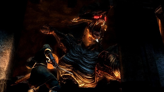 Demon’s Souls – одна из сложнейших ролевых игр, но только из-за того, что установленные правила обязывают игрока вести себя разумно и осторожно: не вбегать в темную комнату (за углом может оказаться голодный зомби), не размахивать топором на узком бордюре (неосторожный выпад, и инерция утянет рыцаря в пропасть), не бросаться на толпу неприятелей (они не станут любезно ждать, пока вы протыкаете их коллегу). Вот и все, что требуется для выживания. Но прежде всего, следует в совершенстве освоить боевую систему, которая приближена к реальным поединкам с холодным оружием. Длинным мечом или алебардой в узких коридорах не навоюешь. Богатырские замахи со звоном отскакивают от холодного камня, оставляя героя на несколько мгновений беспомощнее пиньяты, на которую с палками набрасываются дети-вандалы. Выносливость расходуется на любое действие. Несколько необдуманных выпадов – и сил не остается даже на блок. Точно также не получится выставить щит и звонко хохотать над скребущимися монстрами. Пара мощных ударов – и руки опускаются. Сытное человеческое мясцо готово к употреблению.Одновременно с этим есть контрудары, отскоки и кувырки, парирование и даже возможность прирезать врага втихую, вонзив лезвие в расслабленную спину. Поэтому каждый бой, даже самый простой – это осторожное фехтование. Жизней у противников немного. Но чтобы нанести заветные два удара придется кружить, выжидать и мгновенным выпадом наказывать за допущенную ошибку.