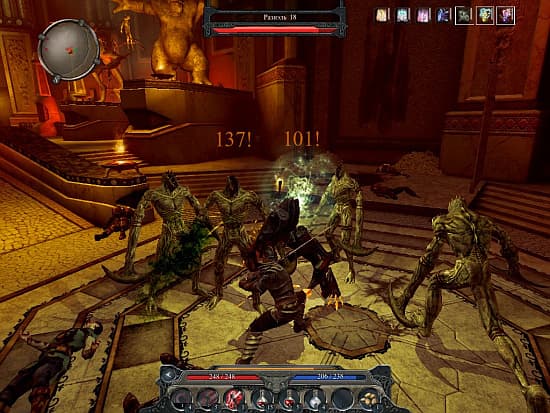 В разборках ящеров много чужого и мало своего. Позаимствованные идеи легко рассортировать и назвать первоисточники. Превращение в дракона – из Breath of Fire и Drakengard. Боевая акробатика с маханием тяжелыми предметами из Gothic и Witcher’а, башня владыки – от Overlord. Вырезание всего живого на полянках, в пещерах и подземельях, прыжки через телепорты, цветные маркеры в названиях клинков и доспехов – Diablo улыбается даже сквозь такие мелочи. Своего совсем немного. Едва ли десяток «моральных» заданий и несколько шарад на общую сообразительность в подземельях. Перемешали с чужим лихо, замесили ловко, испекли вкусно, но вместо кондитерского шедевра получилось стандартное угощение из магазина.