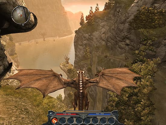 Из многочисленных умений лучше остановиться на двух-трех эффективных приемах, а затем подобрать востребованные пассивные способности, как иммунитет к страху или яду. Поголовье наших противников тоже воспитано в духе одной из профессий. Кто-то толкается, размахивает клинками, травит стрелами и швыряется самонаводящимися заклинаниями, а кто-то активно вызывает потусторонние силы, лечит своих бойцов, пугает и оглушает героя. К сожалению, в каждой из профессий всего пара успешных комбинаций, которые постоянно повторяются на протяжении всей игры. Сюрпризом во время очередной драки могут стать лишь непомерные характеристики монстров. С другой стороны, для скоростных драк больше и не требуется – исход поединка уже предрешен после обмена двумя-тремя ударами. Собственно, дальнейшее прохождение сводится к оттачиванию выученных комбинаций и прочесыванию огромных локаций. Врагов для тренировки завезли много и расставили по карте и в подземельях аккуратными группами. Правда, разнообразия никакого – особи из бестиария лишь слегка меняют свой облик и прибавляют в весе перед новым выходом на арену. Гоблины мутируют в бесов. Скелеты оденут доспехи. Умертвия, драконоиды и некрозавры перекрасят кожу. Мелкие воришки уступят поле для бандитов и разбойников. Рядовых солдат Темного Круга заменят лейтенанты и капитаны. Правда, двигаются статисты на удивление неплохо. Эффектно перекатываются, элегантно прыгают и резво убегают. Иной замах или удар с разворота на полноценную скульптуру тянет. С врастанием в шкуру дракона привычные полянки остаются позади, так как появляется еще одно место для сражений. Разборки людишек меркнут перед сражениями истинных владык неба. Пройдет часов 20, наполненных активными поисками, перестрелками и драками, прежде чем герой научится моментально натягивать заветную шкуру и отращивать ноги, крылья и хвост. Живой штурмовик не работает по мелким одиночным целям. Его задача – уничтожать гигантские катапульты и баллисты, сжигать дома и гнездовья, перехватывать в воздухе виверн и творения некромантов. Аркадные перестрелки идут еще быстрее, чем сухопутные поединки. Проблемы в воздухе те же, что и на земле – врагов много, но нет тактического разнообразия.